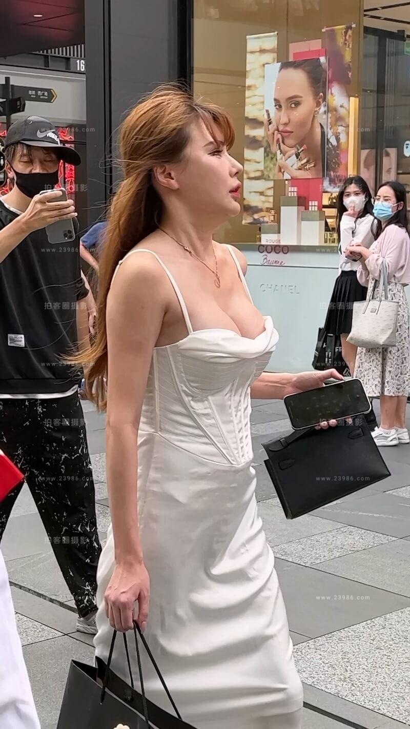竖版4K街拍视频 ,逛街的吊带白裙美女