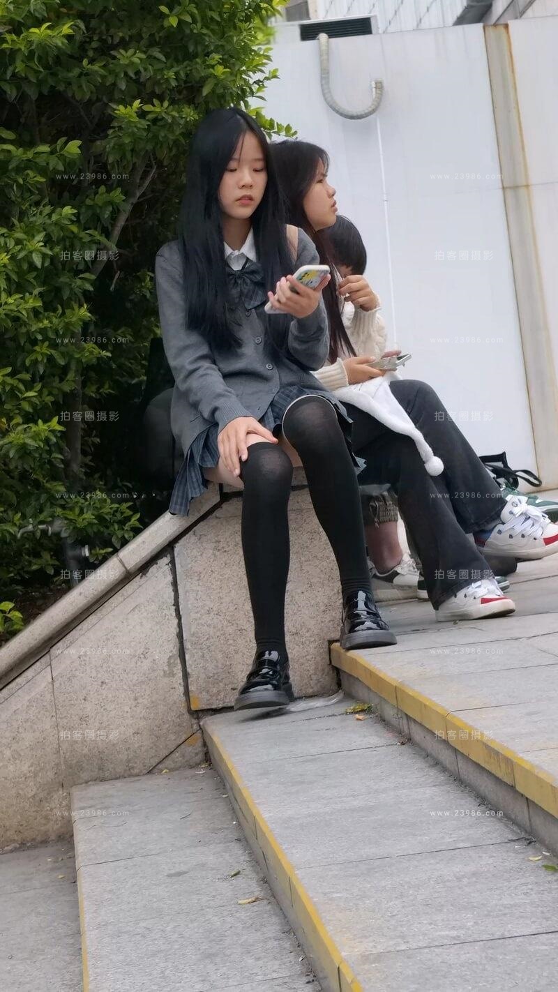 手机4K视频,年年丰广场的黑色短丝jk女人