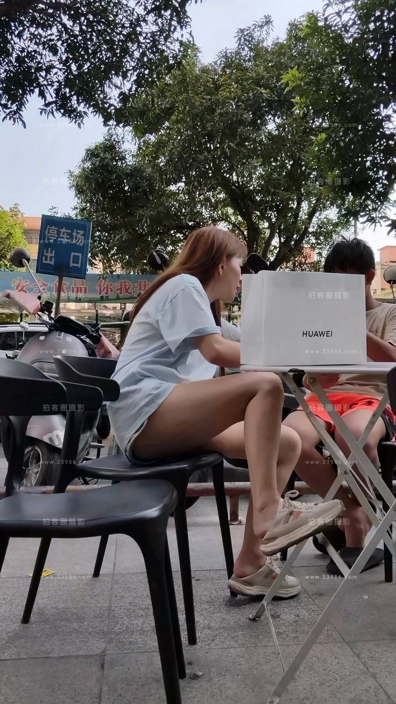 手机4K视频,奶茶店外白色上衣热裤美眉