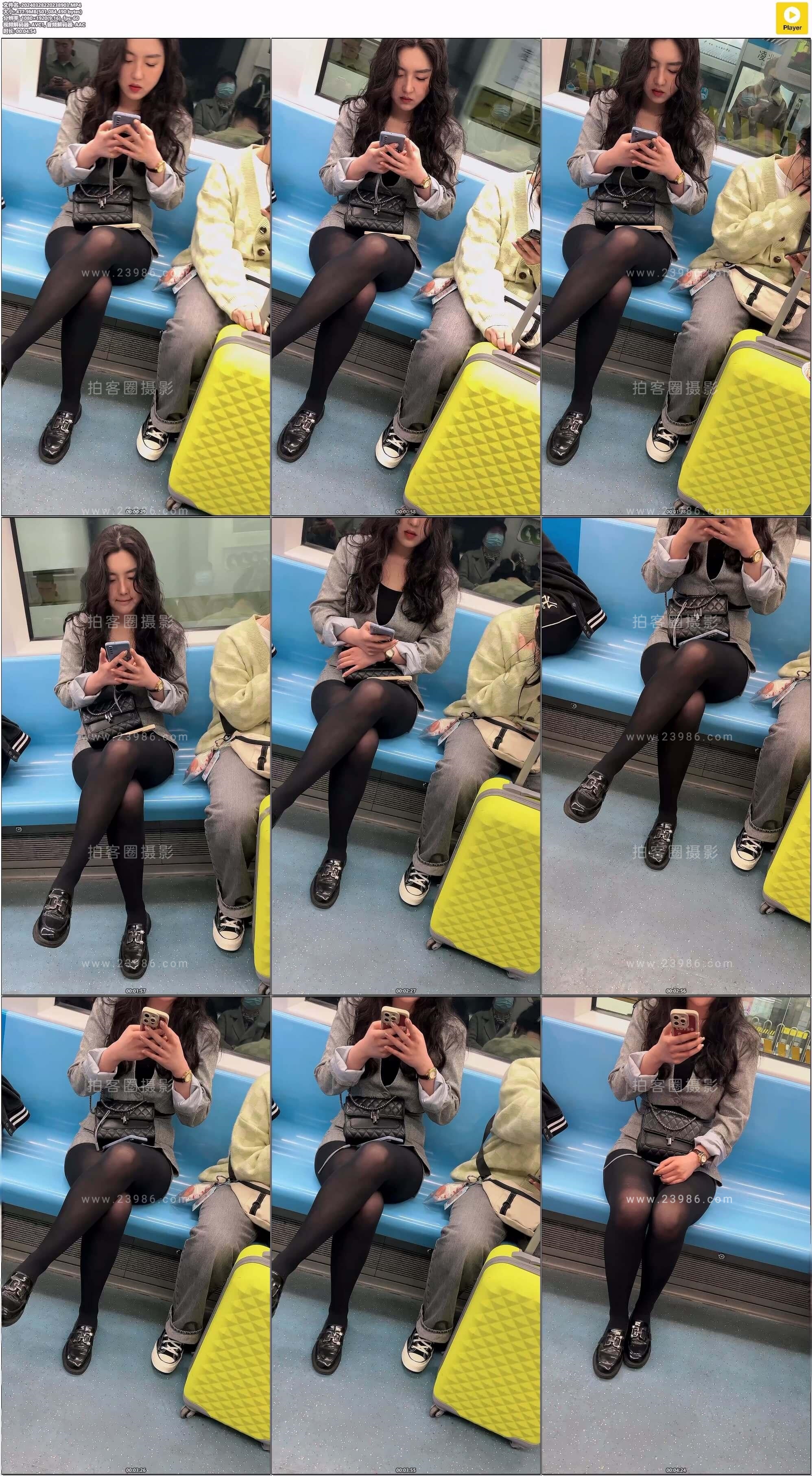 地铁上看手机的黑色丝美眉